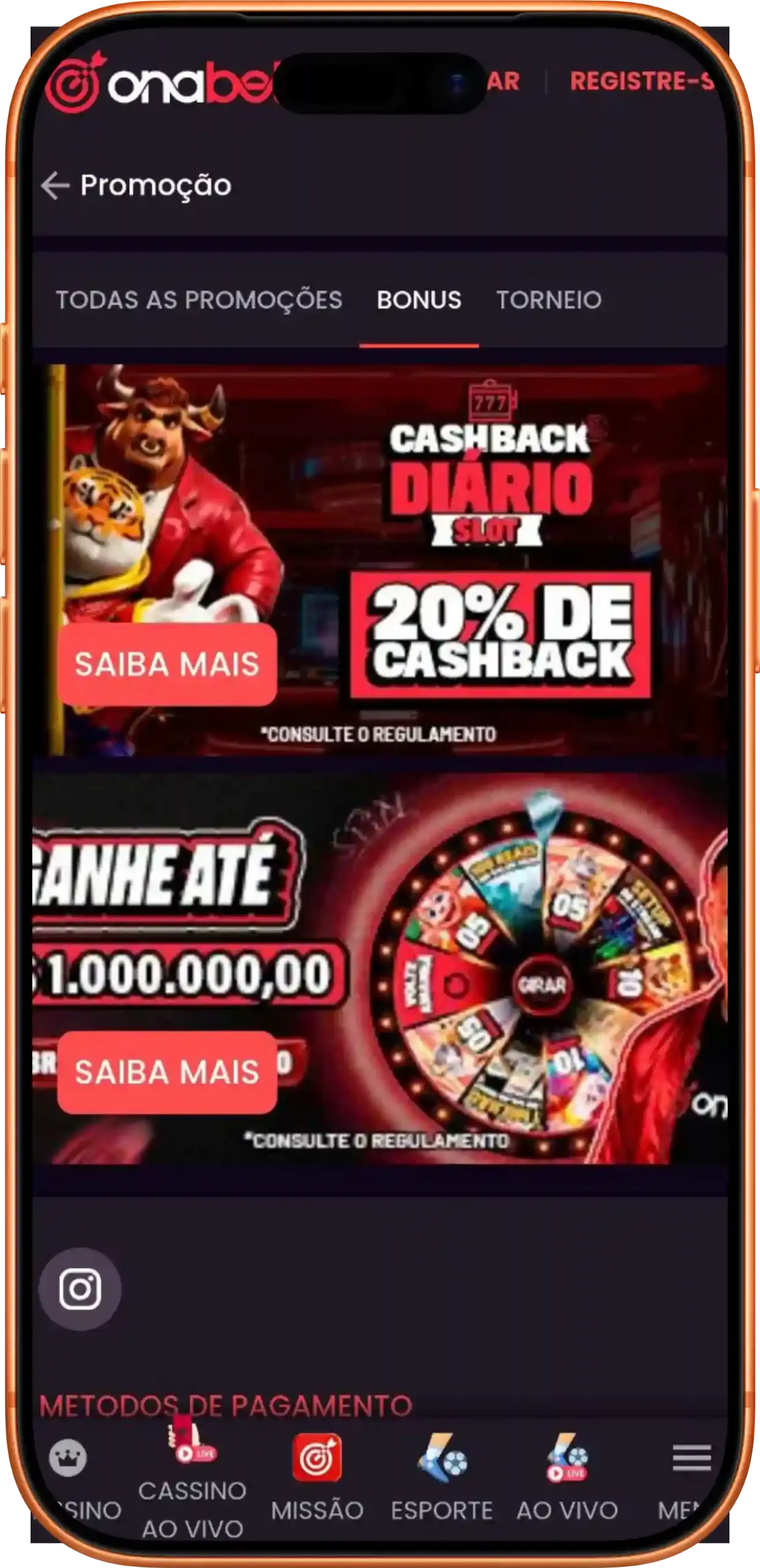 O portal online Onabet oferece entretenimento e apostas online em diversos esportes. A plataforma, adaptada ao Brasil, aceita pagamentos via PIX, tem licença do SPA/MF, está totalmente em português e oferece bônus diários. Cadastre-se e receba até 20% de cashback diário!
